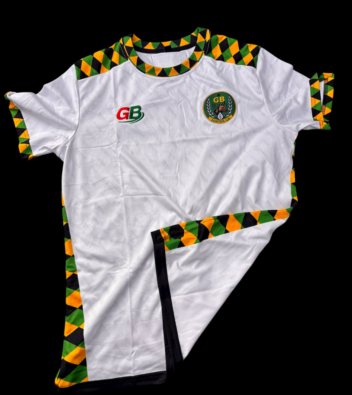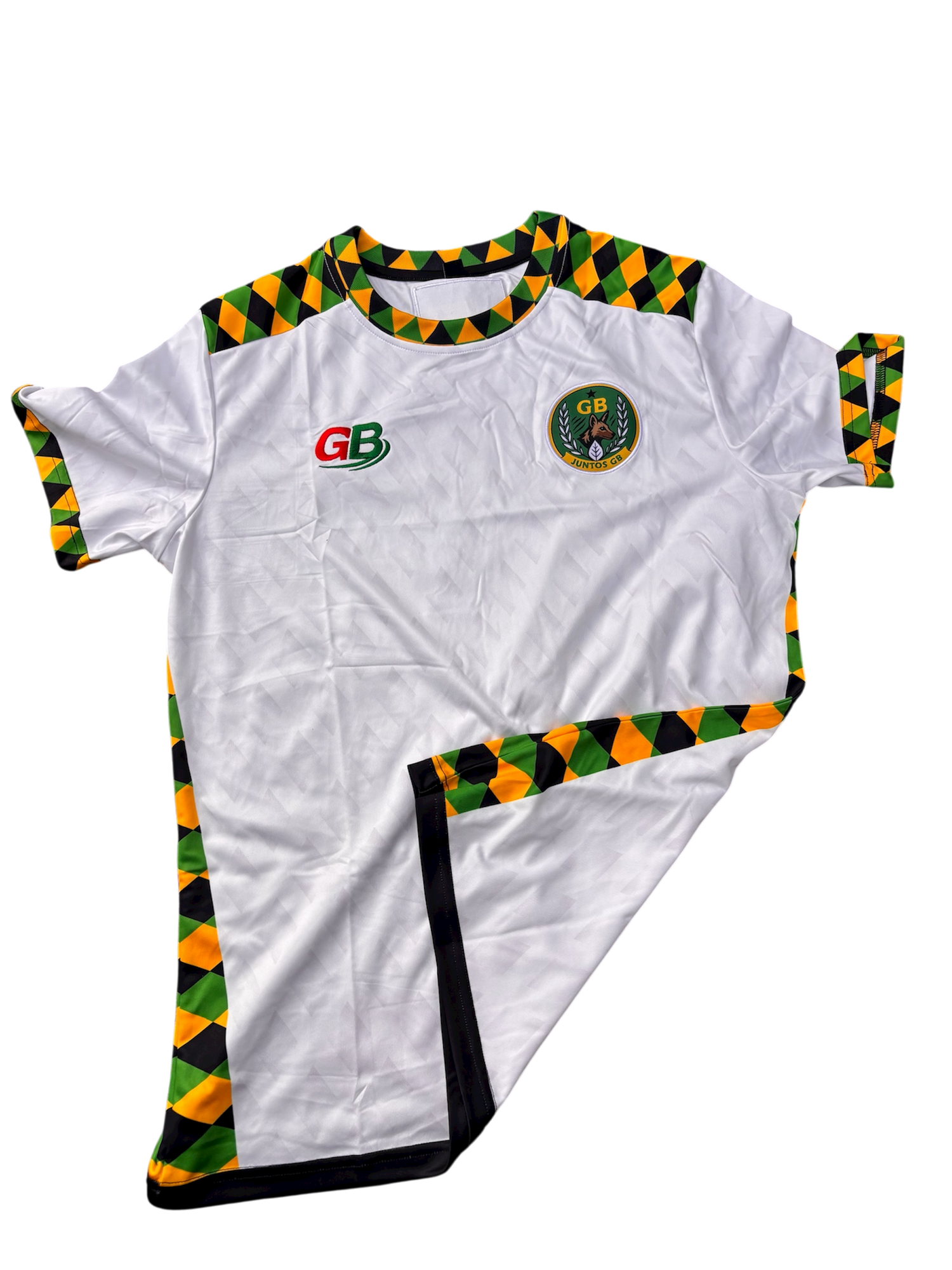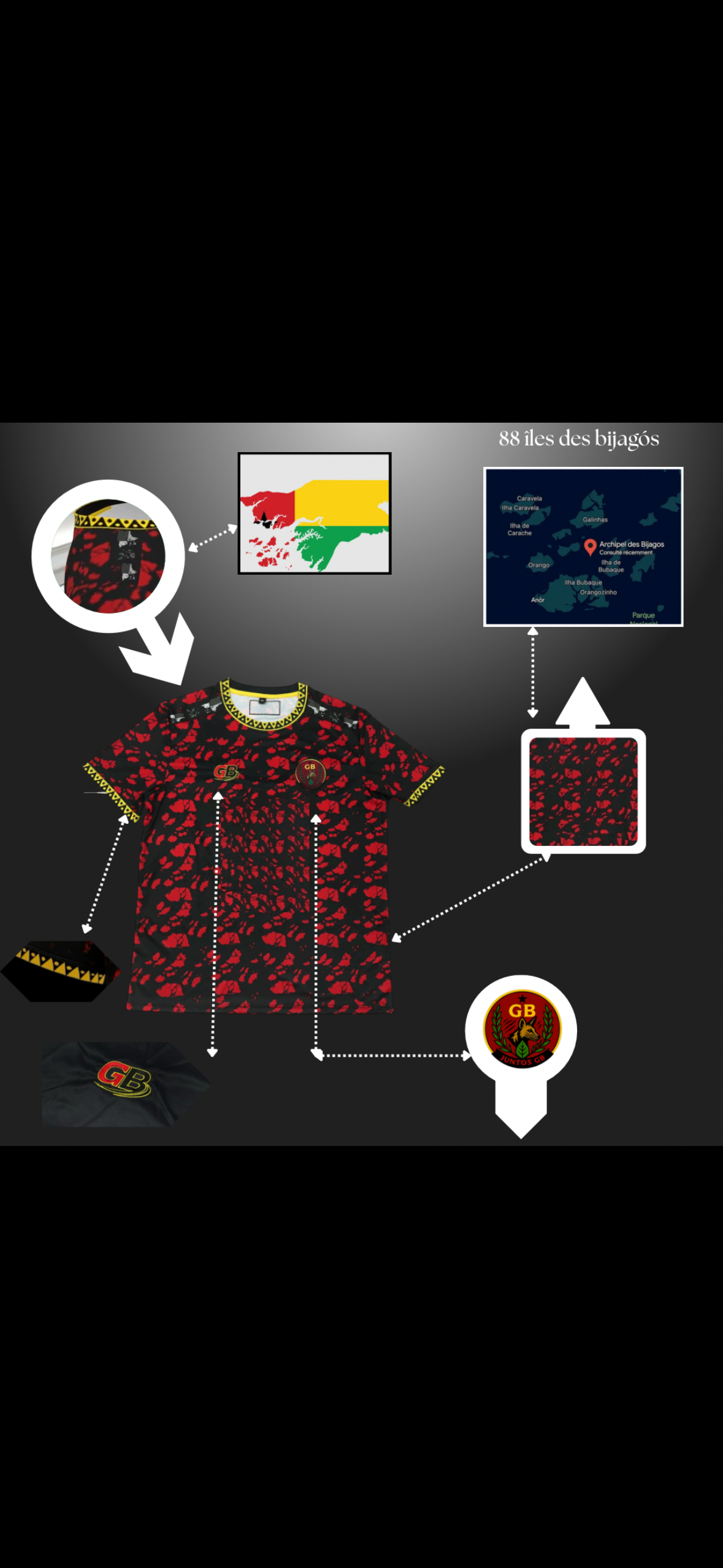 Plongez dans l’univers de la Guinée-Bissau à travers nos prochaines maillots exclusif JuntosGb qui feront partie de notre prochaine collection premium. Plus qu’un simple vêtement, c’est une déclaration d'identité, de fierté et de puissanceUn emblème fort : le logo “JUNTOSGB” & la tête de Lycaon Au cœur de ce maillot, le symbole fort de cette collection : la tête de Lycaon, un loup stylisé, qui incarne la détermination, la loyauté et l’esprit combatif du peuple bissau-guinéen. Juste au dessus, les lettres GB ( Guinée Bissau) fièrement affichées, représentent l’âme de la nation. Ce blason devient un véritable emblème national,