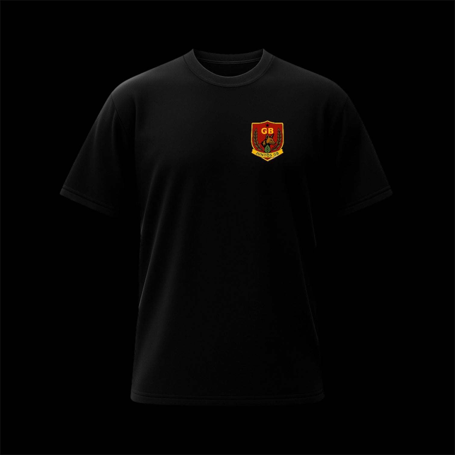 À l’intérieur, on retrouve les initiales “GB” en haut, accompagnées d’éléments symboliques et de l’inscription “Juntos GB” en bas du blason.